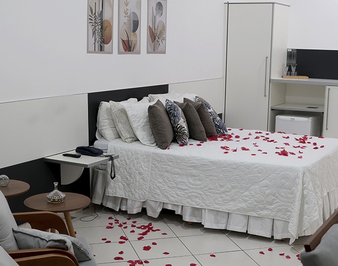 Os quartos do Valentim Palace Hotel são projetados para proporcionar conforto e privacidade, atendendo tanto viajantes a negócios quanto a lazer. Os apartamentos variam entre suítes luxuosas com hidromassagem, ideais para encontros românticos, até opções econômicas e compactas para viajantes individuais ou grupos.